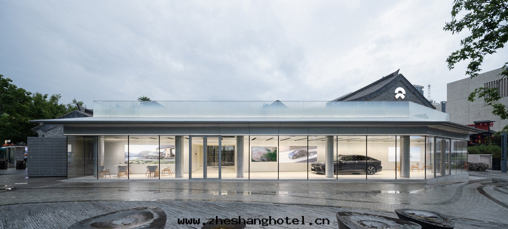 整棟建築在(zài)視覺上呈現(xiàn)出(chū)現(xiàn)代(dài)與(yǔ)傳統建築語(yǔ)言的(de)对(duì)比,從展(zhǎn)廳到用(yòng)戶俱乐(lè)部(bù),静(jìng)谧的(de)庭院(yuàn)景觀迎接着每一(yī)位(wèi)車主(zhǔ)。一(yī)系列不(bù)同高(gāo)低(dī)組合的(de)落(là)地(dì)展(zhǎn)台(tái)采用(yòng)輕(qīng)重(zhòng)对(duì)比的(de)理念進(jìn)行設计,展(zhǎn)台(tái)台(tái)面(miàn)仿如(rú)一(yī)个(gè)个(gè)漂浮的(de)木(mù)托盘,與(yǔ)透明(míng)的(de)亞克(kè)力底座通(tòng)过(guò)鑲嵌的(de)方(fāng)式結合在(zài)一(yī)起(qǐ),不(bù)僅視覺輕(qīng)盈,也(yě)用(yòng)現(xiàn)代(dài)的(de)方(fāng)式呼應(yìng)了(le)傳統榫卯的(de)细(xì)节(jié)。