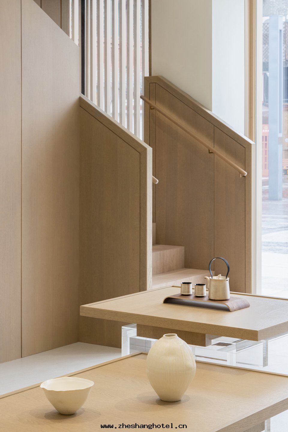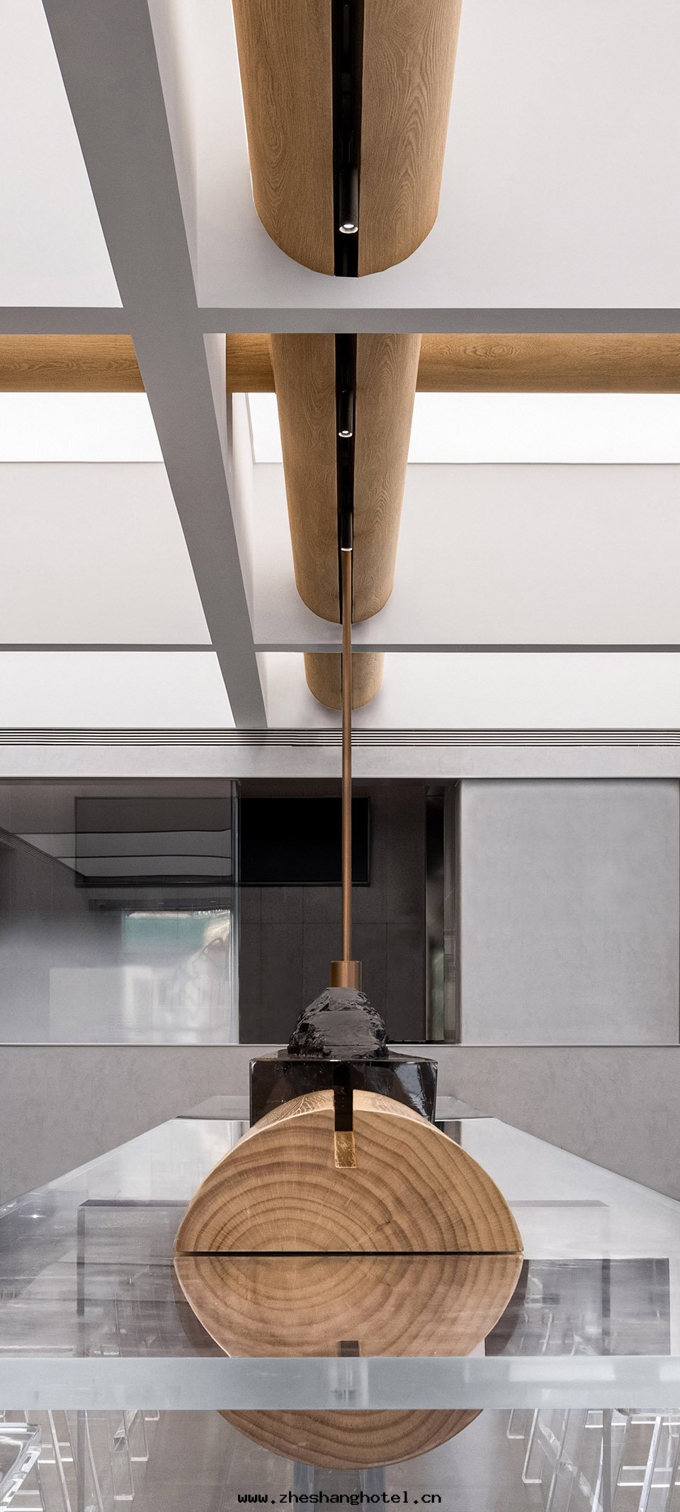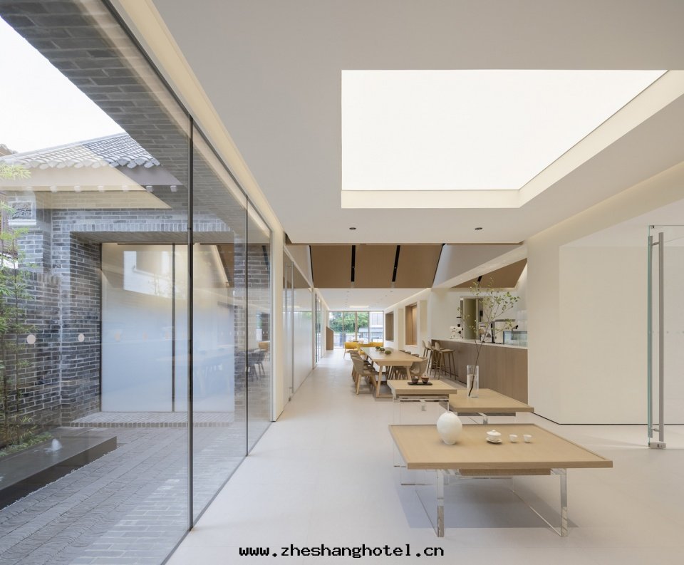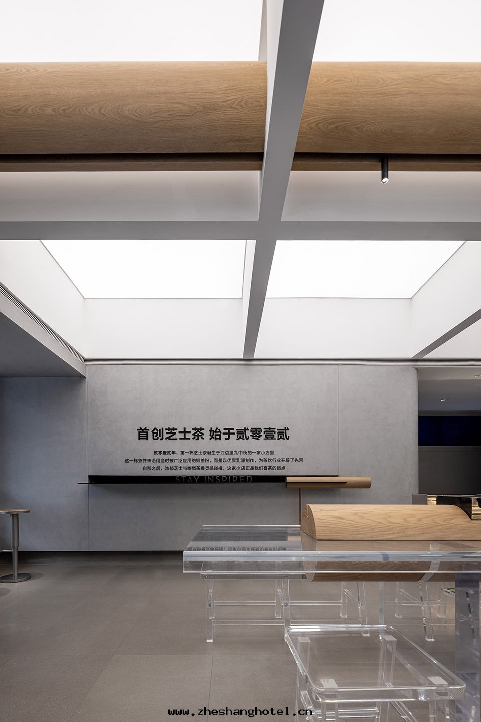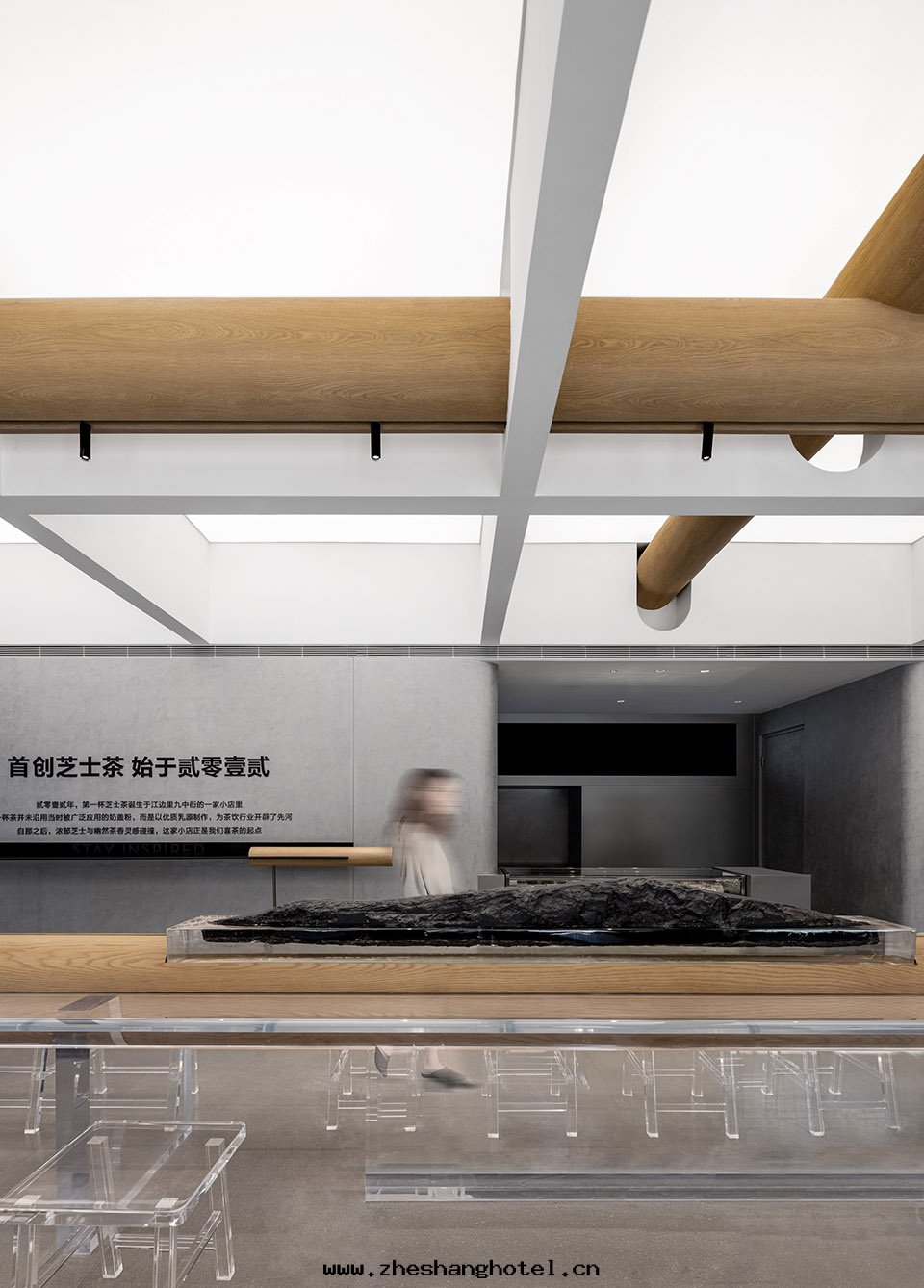 喜茶(chá)北(běi)京(jīng)前门大(dà)街(jiē)店(diàn)中,設计师(shī)将梁(liáng)木(mù)橫置于(yú)桌面(miàn)之(zhī)上,把(bǎ)万(wàn)千想(xiǎng)说(shuō)的(de)話(huà),凝聚成(chéng)一(yī)景,推到人(rén)们(men)面(miàn)前。空(kōng)間(jiān)大(dà)邏輯遵從東(dōng)方(fāng)傳統,采用(yòng)絕对(duì)中心(xīn)对(duì)称布(bù)局(jú),同时(shí)融合現(xiàn)代(dài)年(nián)輕(qīng)人(rén)的(de)习性(xìng)與(yǔ)審美(měi),選用(yòng)現(xiàn)代(dài)化的(de)材料完成(chéng)表(biǎo)达(dá)。门店(diàn)中心(xīn)選擇通(tòng)透的(de)亞克(kè)力桌椅(yǐ),有(yǒu)秩序的(de)十(shí)字(zì)結構上层(céng)空(kōng)間(jiān)與(yǔ)黑(hēi)色(sè)火(huǒ)山(shān)岩下层(céng)空(kōng)間(jiān)相互映襯,为(wèi)的(de)正(zhèng)是凸顯空(kōng)間(jiān)主(zhǔ)題(tí)元(yuán)素:精巧的(de)榫接構件與(yǔ)木(mù)梁(liáng)。