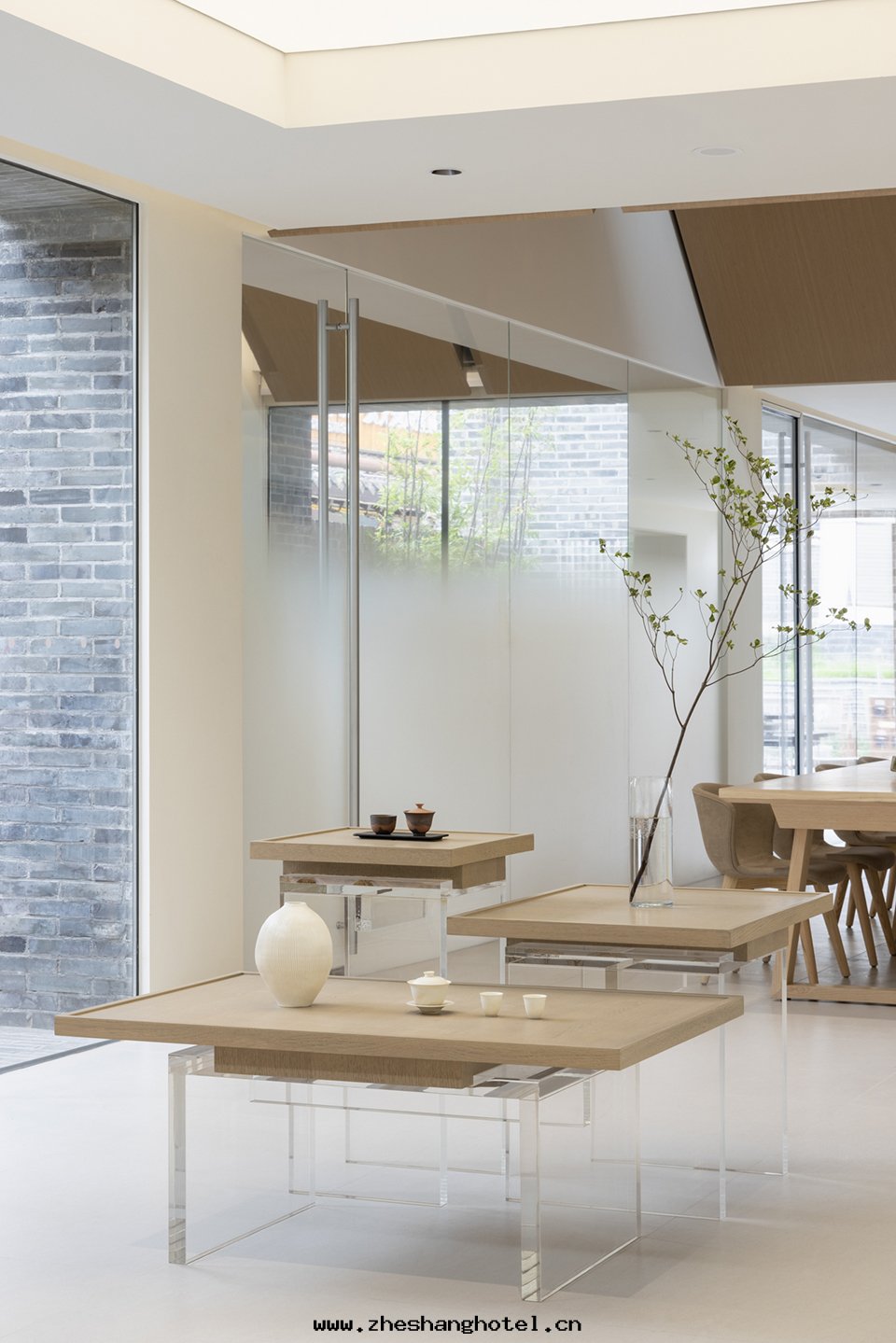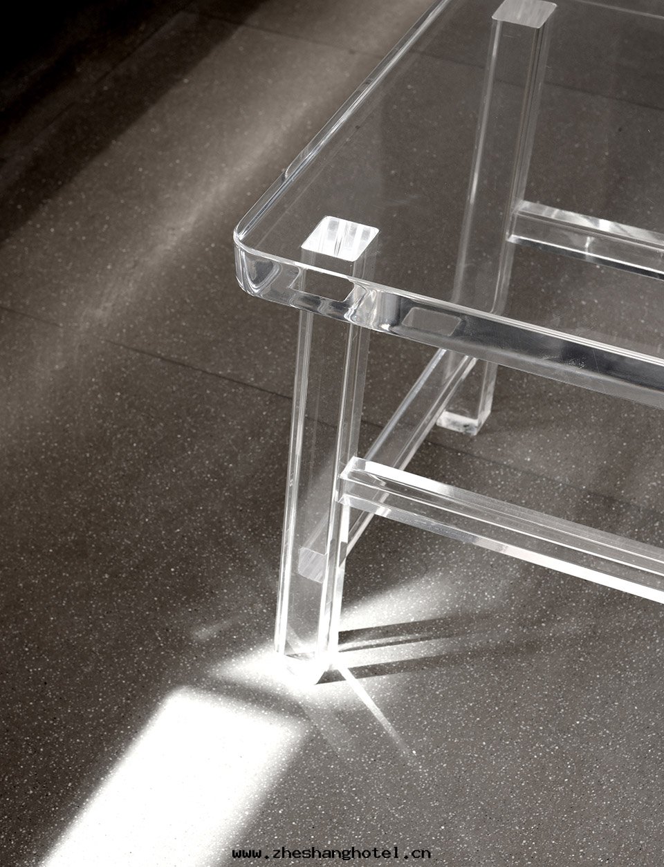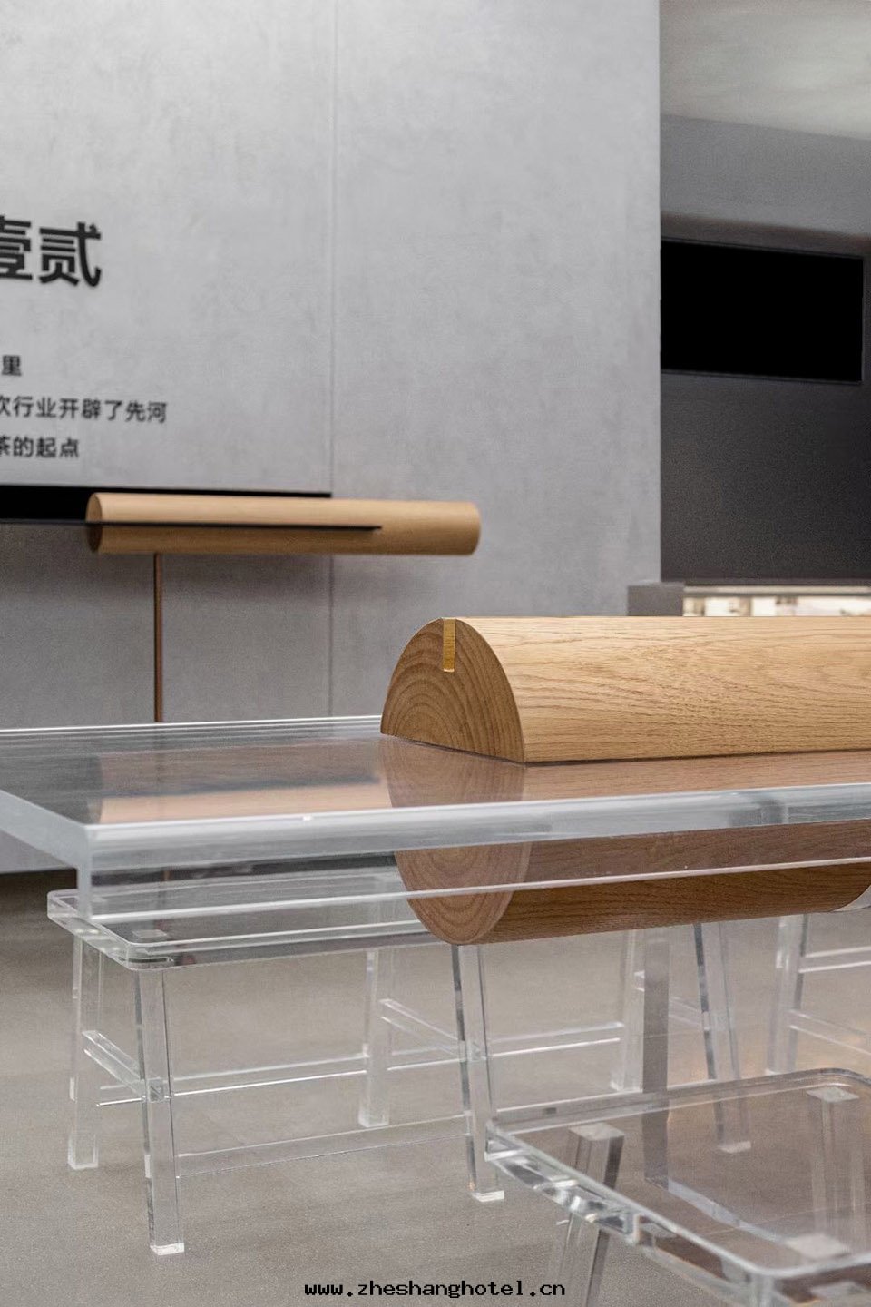 設计师(shī)使用(yòng)极簡主(zhǔ)義,建構主(zhǔ)義美(měi)學(xué)重(zhòng)新(xīn)組合功能和(hé)結構的(de)含義,利用(yòng)亞克(kè)力的(de)透光性(xìng)和(hé)木(mù)材的(de)紋理感(gǎn)勾勒出(chū)透明(míng)桌椅(yǐ)的(de)輪廓,輕(qīng)盈與(yǔ)質(zhì)感(gǎn)的(de)混搭,有(yǒu)種(zhǒng)相互制約的(de)平衡,給(gěi)人(rén)強(qiáng)烈的(de)視覺沖擊力。